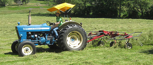 Kyra Tedding Hay with the 4600 Ford Tractor